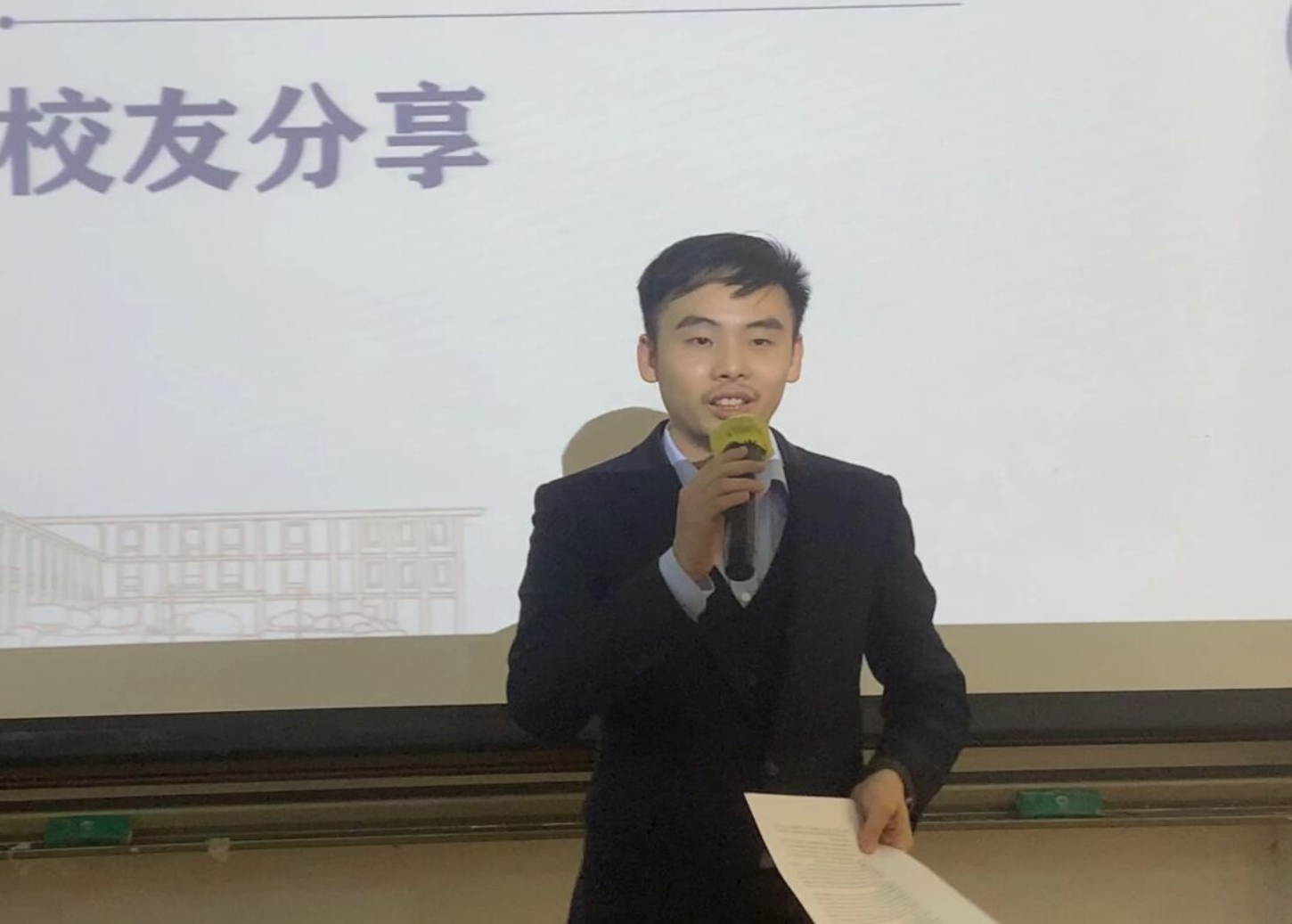 活动伊始,由陆正祥老师致辞。陆老师对伍卓豪师兄的到来表示热烈欢迎,希望伍卓豪师兄能结合自身的实践经历和从业经验为师弟师妹们传经送宝,也希望同学们能从此次分享会中汲取智慧和灵感的源泉,为未来的奋斗之路指明方向。