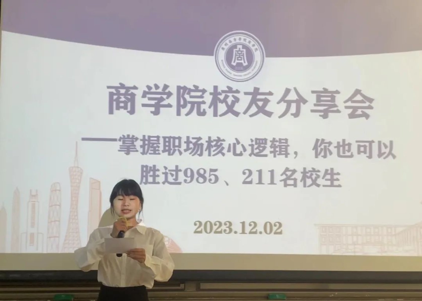 为全力构建我院“三全育人”体系,充分地发挥优秀校友在学生成长过程中的榜样引领作用,进一步加深同学们对就业创业的认识和了解,激励同学们不断提高实习技能、丰富知识结构,教育引导同学们树立正确的就业观念,我院于2023年12月2日15:30在8教206课室顺利举办“掌握职场核心逻辑,你也可以胜过985、211名校生”为主题的校友分享会。