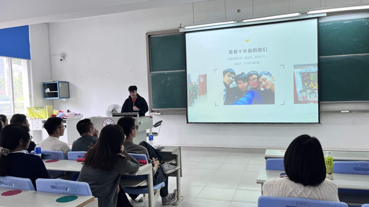 午饭结束经过短暂的休整,下午14时10分09级工管5班的校友们齐聚5教202课室,开了一场阔别十年的班会。班长发表题为“2009级大山里的孩子们”的演讲,带领大家打开时间胶囊,回到认识的起点,一起开始十年回忆录。当年课堂上的孜孜不倦、球场上的挥汗如雨、团建素拓时的爽朗笑声……点点滴滴,拼凑起了精彩的大学时光。没能一起返校的校友也通过班长送来了自己的祝福,希望下次返校再会,不留遗憾。在班会尾段,williamhill中文校友工作小组工作人员代表williamhill中文校友会给师兄师姐们送上了校友刊和日历等精美礼品,以礼为信,祝贺校友毕业十周年并祝愿未来大家都能越来越好,顶峰再见。