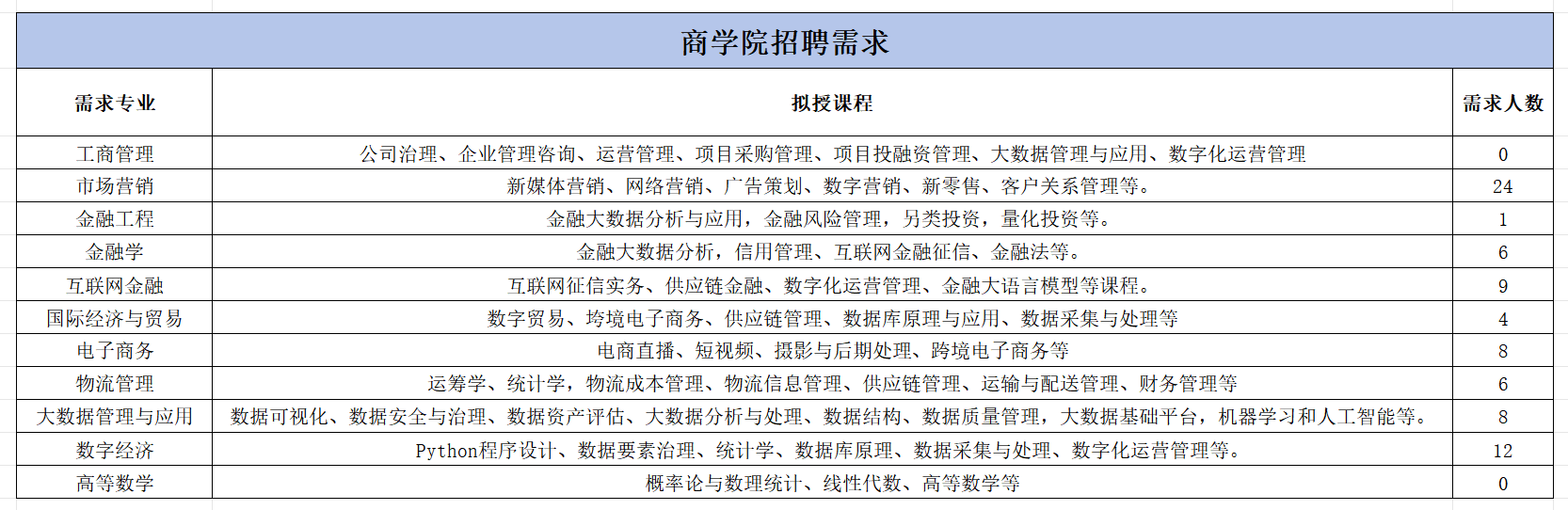 学院共设有13个专业:电子商务、经济学、国际经济与贸易、旅游管理、金融工程、国际商务、金融学、物流管理、工商管理、市场营销、互联网金融、数字经济、大数据应用与管理,在全国应用型大学本科专业排名中全部处于顶尖或一流水平。