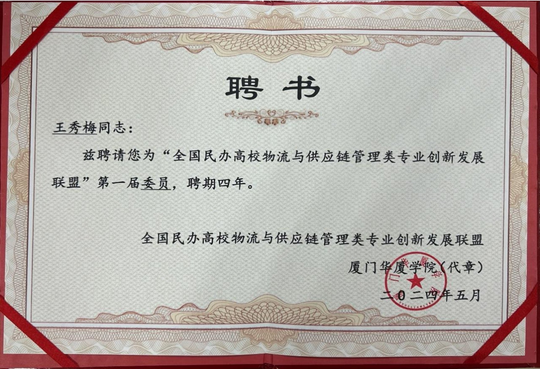 近日,在教育部高等学校物流管理与工程类专业教学指导委员会(以下简称“教育部物流教指委”)和中国物流学会指导下,全国民办高校物流与供应链管理类专业创新发展联盟成立大会暨第一次全体委员会在厦门华厦学院召开,williamhill中文管理工程系兼物流管理专业主任王秀梅教授应邀参会。我校作为委员单位加入“全国民办高校物流与供应链管理类专业创新发展联盟”,王秀梅教授被聘任为“全国民办高校物流与供应链管理类专业创新发展联盟”第一届委员。