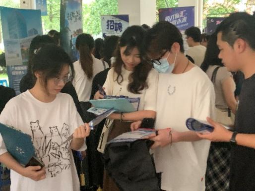 参会的大三邵同学告诉我们:前期自己已对参会的各家公司做了背调,了解企业的岗位需求;自己作为大三的学生,虽然还没有正式走进职场,但是本次的招聘会让她提前了解企业的用人要求,为以后的学习和求职做准备。