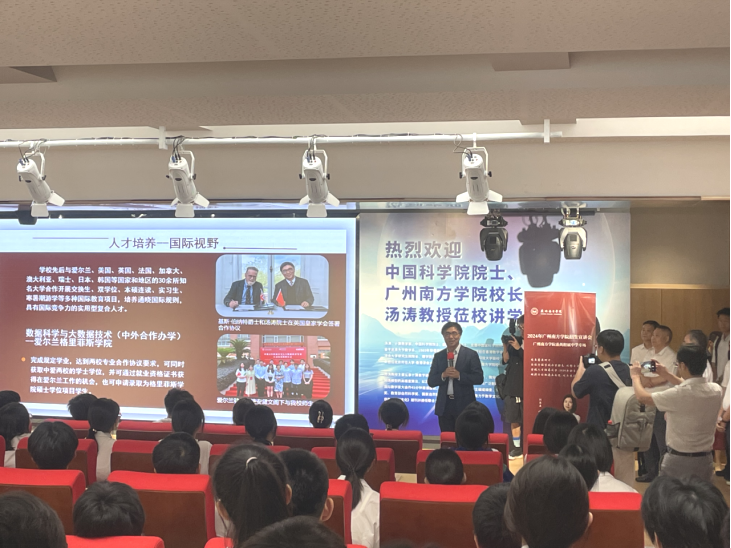5月14日,威廉官网中国校长汤涛院士走进威廉官网中国番禺附属中学,以《数学推动现代科技》为题作专题科普讲座,拉开了我校2024年招生宣讲会系列活动的序幕。williamhill中文高度重视招生宣传工作,副院长贾佳带队参加此次活动。