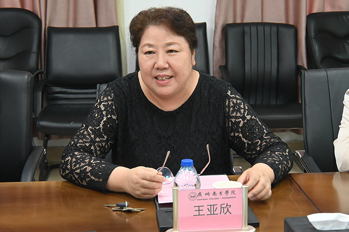 王亚欣副院长则详细介绍了williamhill中文的发展历程、组织架构、师资队伍、学科成果等方面的内容。她对文华学院去年通过教育部本科合格评估表示赞赏,并希望未来能在教学管理、教学档案、论文指导等方面展开更多合作。