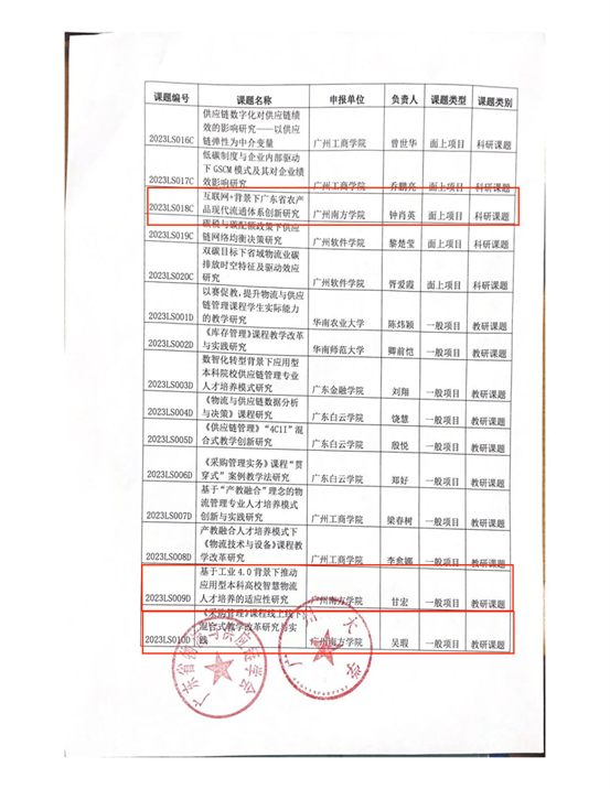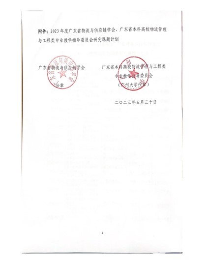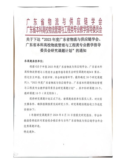 2023年5月30日,广东省物流与供应链学会、广东省本科高校物流管理与工程类专业教学指导委员会公布了2023年度省级研究课题入选计划。