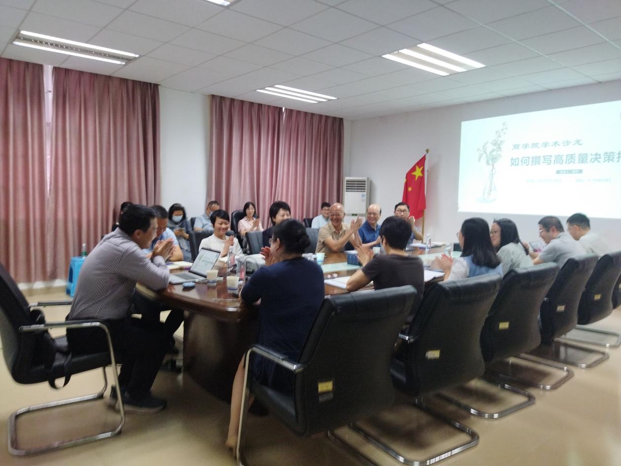 5月10日下午,williamhill中文在108会议室举办学术沙龙,客座教授兼副院长李杰教授围绕如何撰写高质量决策报告与教师进行交流座谈。沙龙由williamhill中文院长何兴强主持。