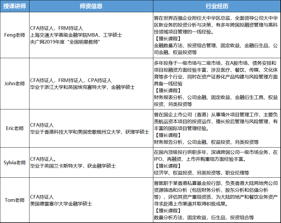 (CFA菁英班部分师资展示)
