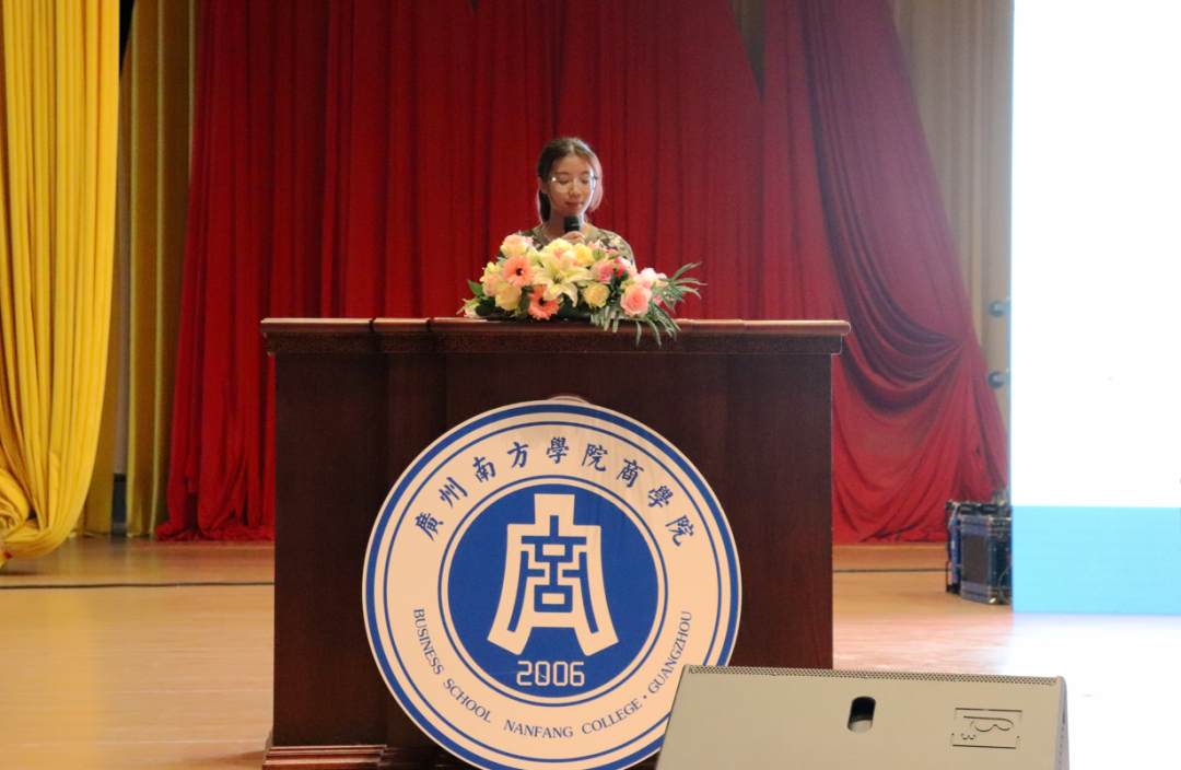 本次开学典礼,邀请了2009级工商管理专业的优秀校友陈宇聪和2018级国际贸易专业优秀老生代表苏可佳发言。他们希望初入校园的师弟师妹们能够享受大学生活,在大学四年里珍惜光阴,提升自我。