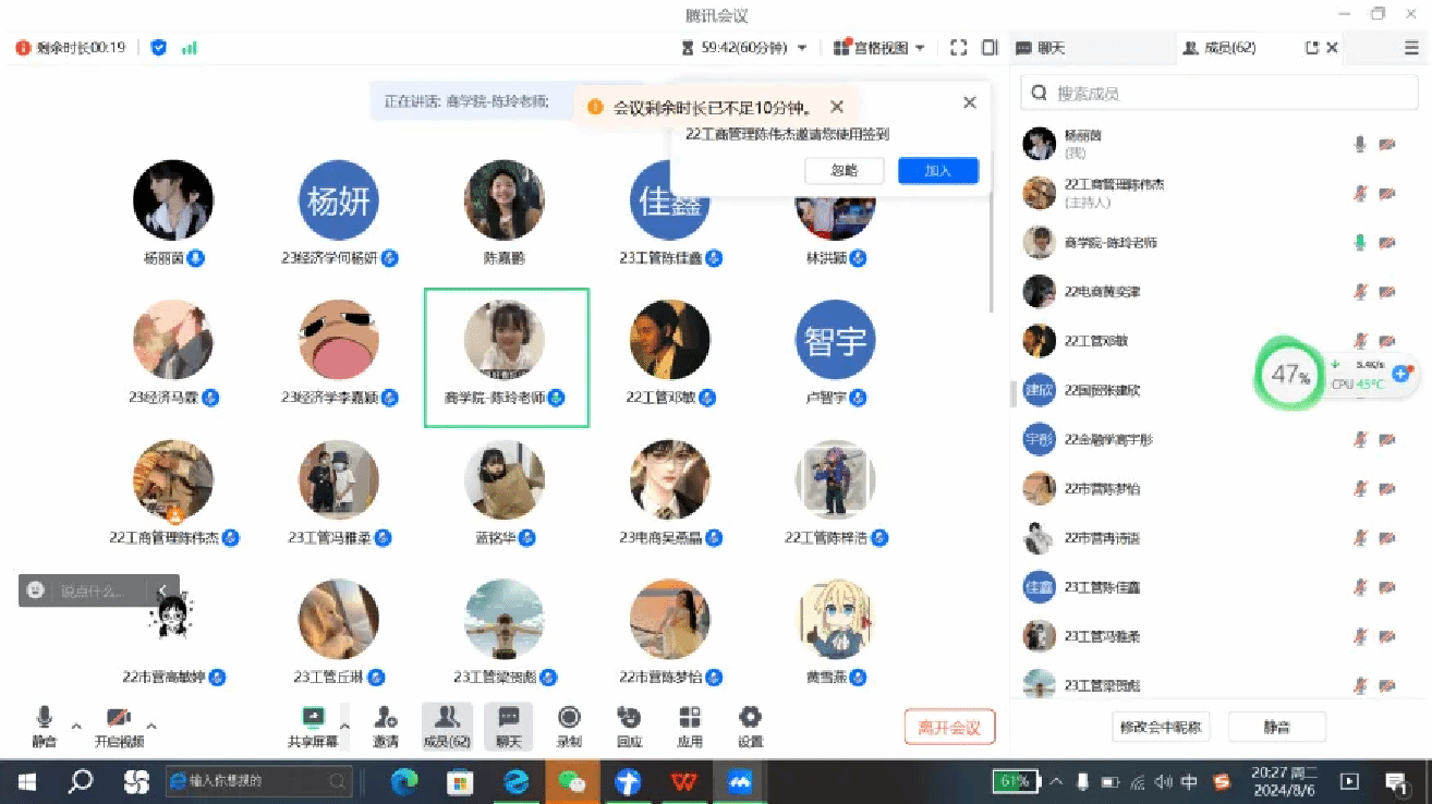 风起今秋,来日方长。迎新季如期而至,williamhill中文朋辈辅导员逐渐开始忙碌的迎新工作。为精准高效赋能朋辈辅导员,提高服务新生水平,顺利迎接2024级新生,williamhill中文于2024年8月6日在腾讯会议召开2024年朋辈辅导员团队奖助贷工作培训会议。williamhill中文学工办主任韩露老师、奖助贷工作负责人陈玲老师、朋辈辅导员负责人杨丽茵老师、辅导员唐子惠老师、文俊杰老师、林诗婷老师、黄雪燕老师、刘海洋老师、陈金玲老师及全体2024级朋辈辅导员参与了本次培训会。
