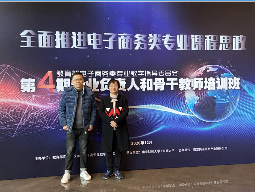 为建设广东省一流专业,我院钟肖英副院长及管理工程系毛锦庚老师于2020年12月2日至12月5日参加由教育部高等学校电子商务类专业教学指导委员会所组织的电子商务专业负责人与骨干教师培训,会议主题全面推进电子商务类专业课程思政。此次培训会议在南京财经大学、东南大学以及南京奥派信息产业股份公司召开,其中,电子商务教指委副主任李琪副主任、南京财经大学国际贸易经济学院院长宣烨教授、南京奥派信息产业股份公司董事长徐林海以及来自全国各地的60位电商专业负责人及骨干教师参加此次培训。