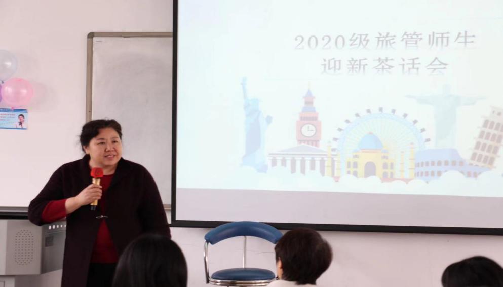 表演结束后,王亚欣教授发言,她从自身对旅游管理这个专业的认识及喜爱讲起,分析了旅游管理未来的发展前景,让学生对旅游管理可以选择的行业有了更进一步的了解,也让同学们了解到旅游管理专业的人才培养未来还有更多的资源支持。