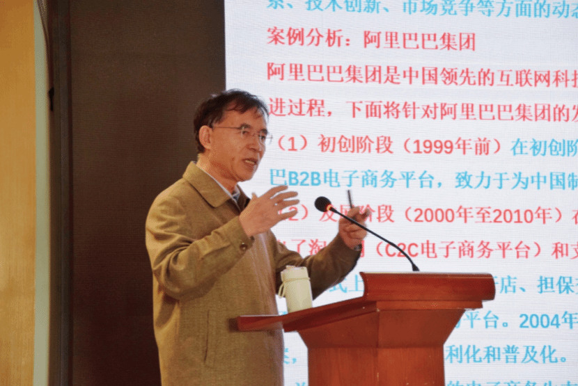 专题讲座上,李琪教授从“平台经济界定与分类”“电子商务平台的经济属性”“电子商务平台经济的生态演进及电商三创人才培养助力电商平台大发展”四个方面,深入剖析电商平台经济的特征和规律。他详细解读了《中共中央关于进一步全面深化改革、促进中国式现代化的决定》中对平台经济发展和监管提出的重要要求。李琪教授强调,平台经济是推动经济发展的新动能。它为拓展市场需求、激发创新活力以及增加就业岗位开拓出诸多全新路径。同时,其生态体系丰富多样,涵盖消费娱乐、服务便民、生产协作、教育启智等多个领域,深刻影响着社会生活。学校积极举办“三创赛”,旨在培育契合平台经济发展所需的专业人才,此举对于促进平台经济以及电子商务领域的发展具有重大意义。另外,李琪教授围绕“三创”人才培养这一核心主题,深入阐述了“三创赛”的历史沿革、办赛经验、代表案例以及竞赛规则等内容。并针对第十五届“三创赛”的突出亮点和全新举措进行了深入阐释与专业指导。