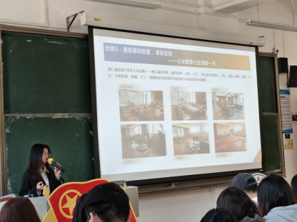 在王牧蓁老师的精彩开场下,宣讲会正式拉开序幕。王老师不仅概述了大赛的基本框架,还深度剖析了银发产业的时代背景与大赛的重要意义。随后,梁秋华经理接过话筒,以一段引人入胜的视频为引子,生动展现了惠仁康养的魅力与愿景。她强调,惠仁康养顺应时代发展与民生需求,致力于成为中国医养健康产业的探索者,“从化珠江生命国际健康城”便是其在大湾区国际医疗服务领域的示范项目,惠仁康养正以前瞻性的视野,致力于打造医养教乐游一体化的康养生态。