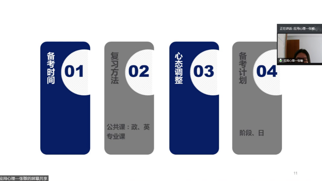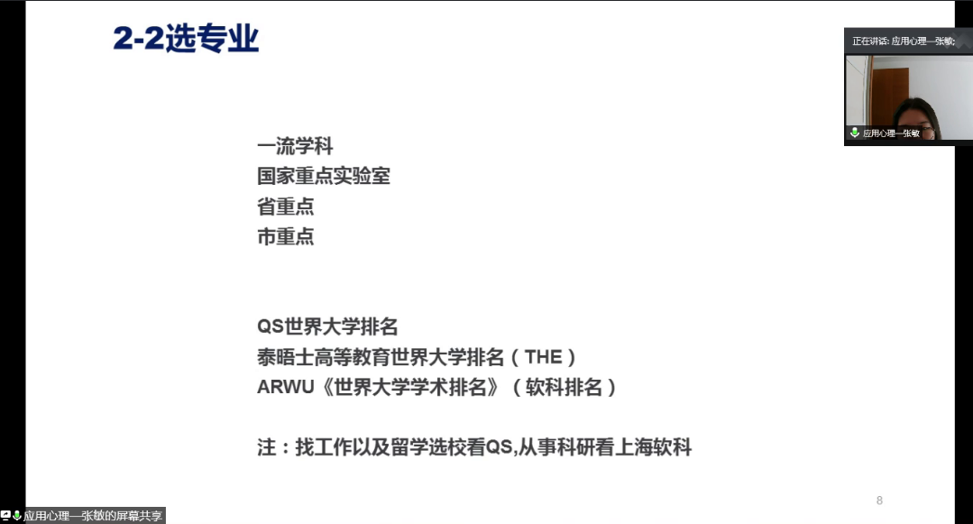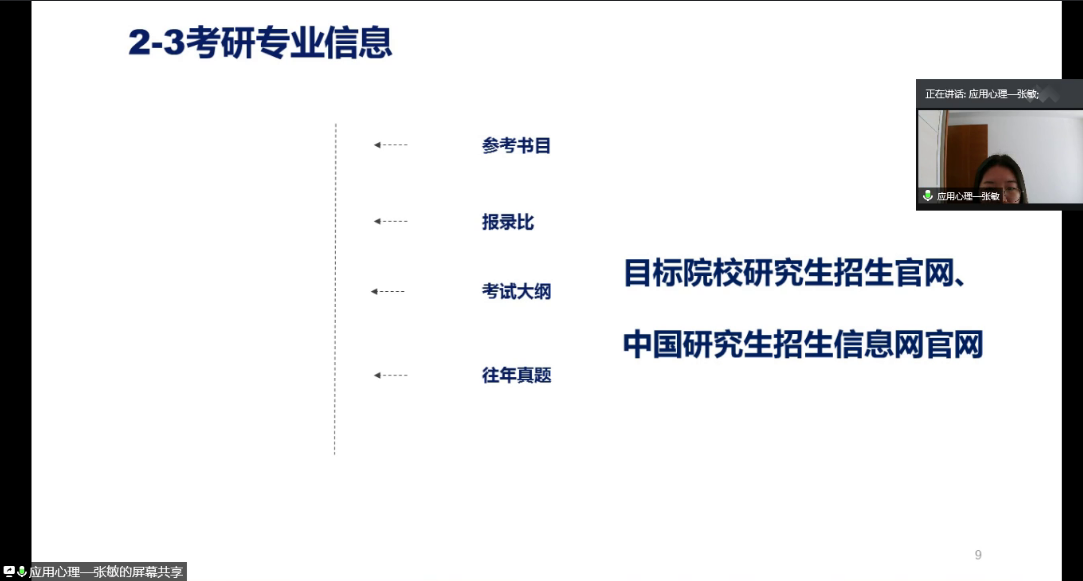 7月12日下午3时,williamhill中文考研分享会于线上顺利举行。2014级张敏学姐受邀担任主讲嘉宾,向在校学生分享考研经验与心得。