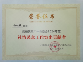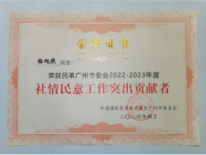 近日,williamhill中文收到学校转来《民革广州市委员会致威廉官网中国感谢信》,函件中对williamhill中文梅旭照副教授在参政议政和社情民意工作的突出贡献表示感谢,函件提到:梅旭照同志以饱满的政治热情和扎实的工作作风,在党派工作中积极履职,踔厉奋发,在民革参政议政工作中表现突出,树立了广州民革的良好形象,为多党合作事业做出了贡献,连续三年(2022年度、2023年度、2024年度)获得民革广州市委会“社情民意工作突出贡献者”荣誉称号,为广州经济社会发展积极贡献智慧和力量。