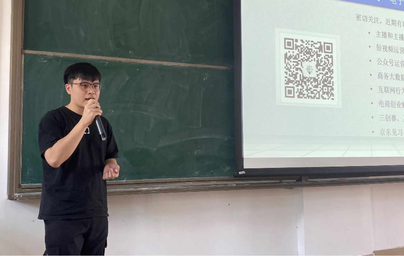 “互联网+”金奖团队代表司名远师兄主要分享了他的个人参赛经验。他认为同学们应积极参加各种不同的比赛活动,在比赛过程中不断学习并形成自己的想法。同时,他也非常感谢在这次“互联网+”大赛中,各位老师对他这个团队的认真指导,并期望各位新生在未来的比赛活动也能够获奖。