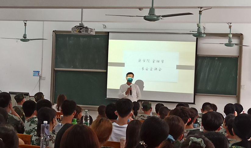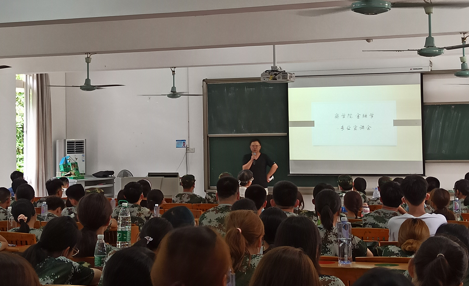 陈明宪教授不断抛出有趣的金融问题与新生互动,一步一步将新生引入金融的课堂,让大家认识到:金融并不是想象中那么高不可攀,金融就在我们身边,比如每天我们用到的支付宝,微信红包,银行卡等都与金融密切相关,金融与生活中的方方面面都密切相关。陈教授还提到他指导的硕士生三分之二以上收入都比老师高,青出于蓝而胜于蓝。经过陈教授生动有趣的讲解,同学们对金融学专业的就业前景有了新的认识。