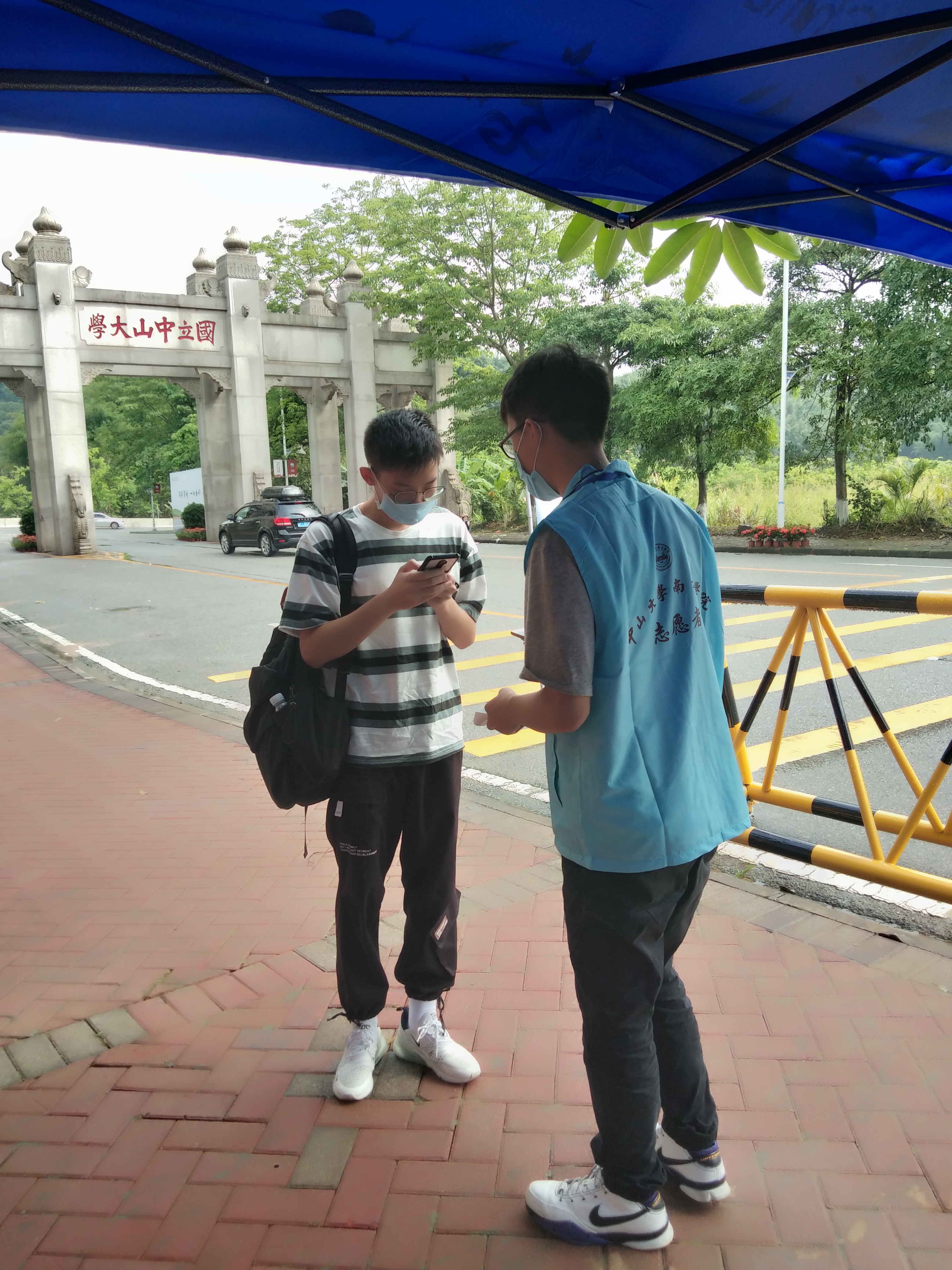“欢迎回家!”听到暖心的话语、看到前来学校校门的(领导)和学生工作办公室的老师们,刚刚迈进校门的返校学生露出了灿烂的笑容。