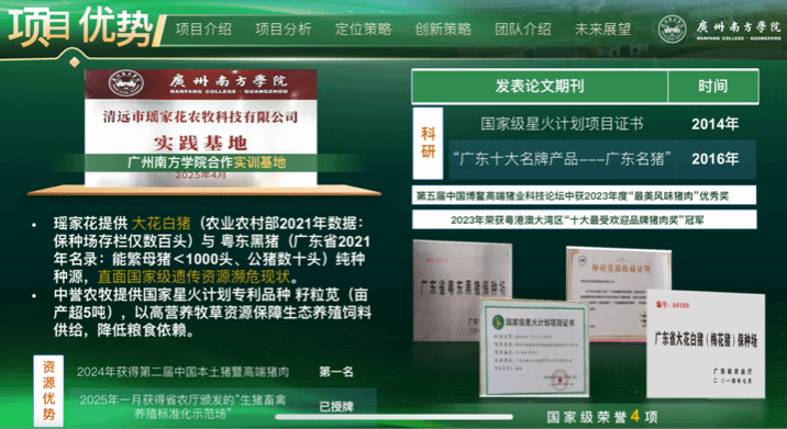 瑶家花生态农业公司是清远市农业龙头企业,专注广东梅花猪与粤东黑猪保种及产业化开发,拥有广东省畜禽遗传资源保种场资质,其产品获“广东名猪”“粤港澳大湾区十大受欢迎品牌猪肉”等称号。williamhill中文近年深化产教融合,通过“三创赛”等平台推动超30个涉农项目落地,2024年获评广东省产教融合示范基地。