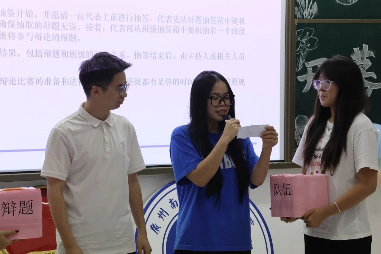 表演赛结束后,杨丽茵老师与植俊铖老师共同抽取了本届比赛的辩题与组别,为正式比赛的开展揭晓悬念。