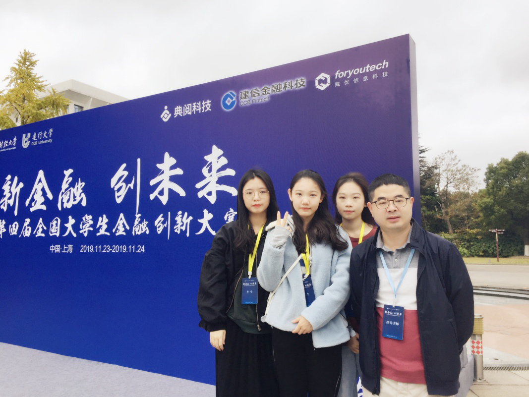 2019年11月24日,我院郑莹等学生在金融系刘蕙老师、杨欣老师和朱海鹏老师等老师的指导和带领下,参加了由上海财经大学与上海建行大学联合主办,亚洲金融协会普惠金融专业委员会担任业务指导单位,上海财经大学上海国际银行金融学院、建行大学上海金融创新学院、中国建设银行上海市分行、建信金融科技有限责任公司、建行大学苏州金融科技学院、格莱珉(中国)联合承办的第四届全国大学生金融创新大赛全国总决赛,并喜获佳绩。本次大赛围绕“银行保险理财综合业务”、“互联网金融创新与运营管理”、“新金融产品创新创意设计”三大主题同时展开,吸引了全国20余个省市、101所本科和高职院校的近千名师生参赛。