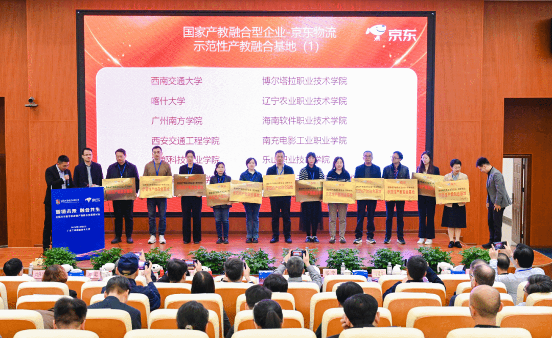 本次会议期间,经过项目申报、专家评审、会议合议环节,最终评选校优秀产业学院共22所,将授予“十佳合作单位”;典型产教融合基地23个,将授予“示范性产教融合基地”;教育教学优秀名师共35人,将授予“产教融合教学名师”称号;智能供应链行业产教融合共同体新增副理事长单位3家,新增常务理事22家。其中,威廉官网中国入选京东“国家产教融合型企业-京东物流示范性产教融合基地”。学院南方创新谷主任李维国副教授代表学校领取该项荣誉,该成果体现了学校在推动校企协同育人、深化产教融合方面的扎实成效。