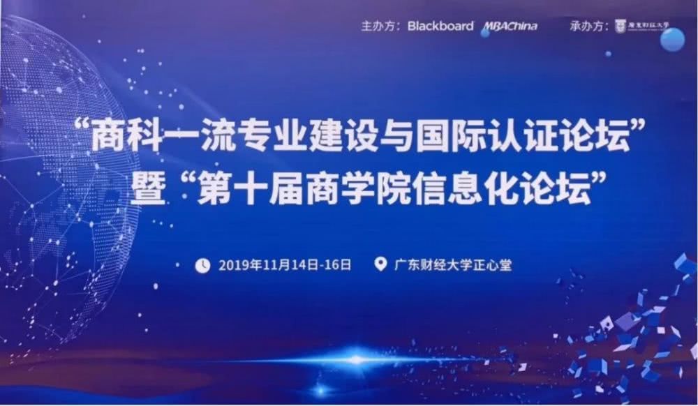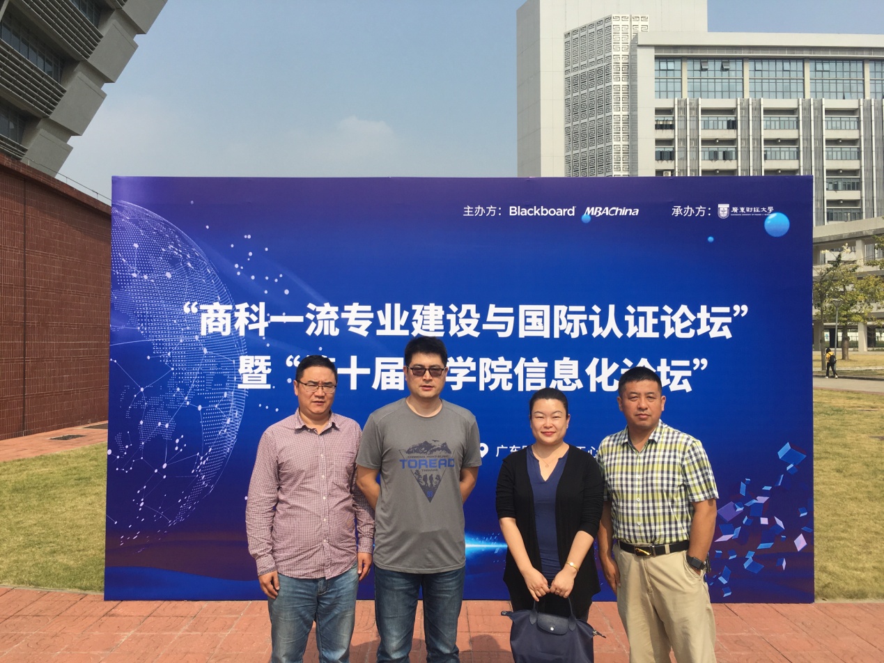 2019年11月15日,williamhill中文副院长张玉冰副教授、国际经济与贸易专业主任马夏冰老师、国际商务专业主任马学文副教授和教务办公室主任简明老师等四人赴广东财经大学参加了由《williamhill中文信息化论坛》组委会(Blackboard中国、MBA中国网)主办、广东财经大学承办的“商科一流专业建设与国际认证论坛”暨“第十届williamhill中文信息化论坛”。