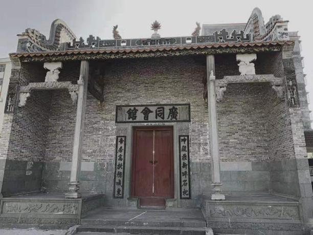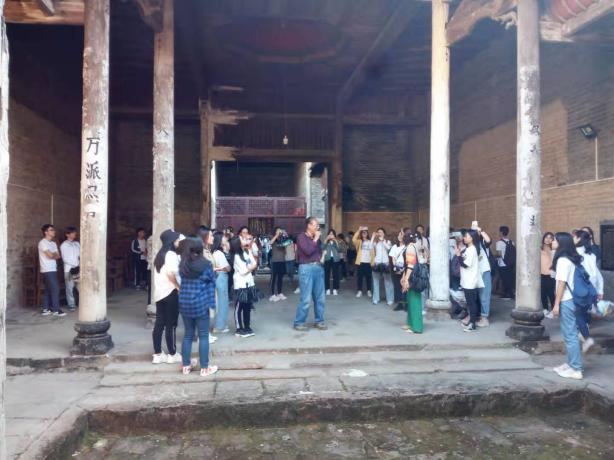 成员跟随讲解员何教授来到“广同会馆”。同志们认真听讲解,手持研学课本和笔记录所见所闻所想。会馆内展出有国立中山大学抗战时期迁到坪石办学各学院的旧址介绍,其中,广同会馆是当时国立中山大学的校本部和研究院,由于国难当头,学子众多,所以各学院分布在围绕坪石100里范围之内的祠堂和庙宇之中。