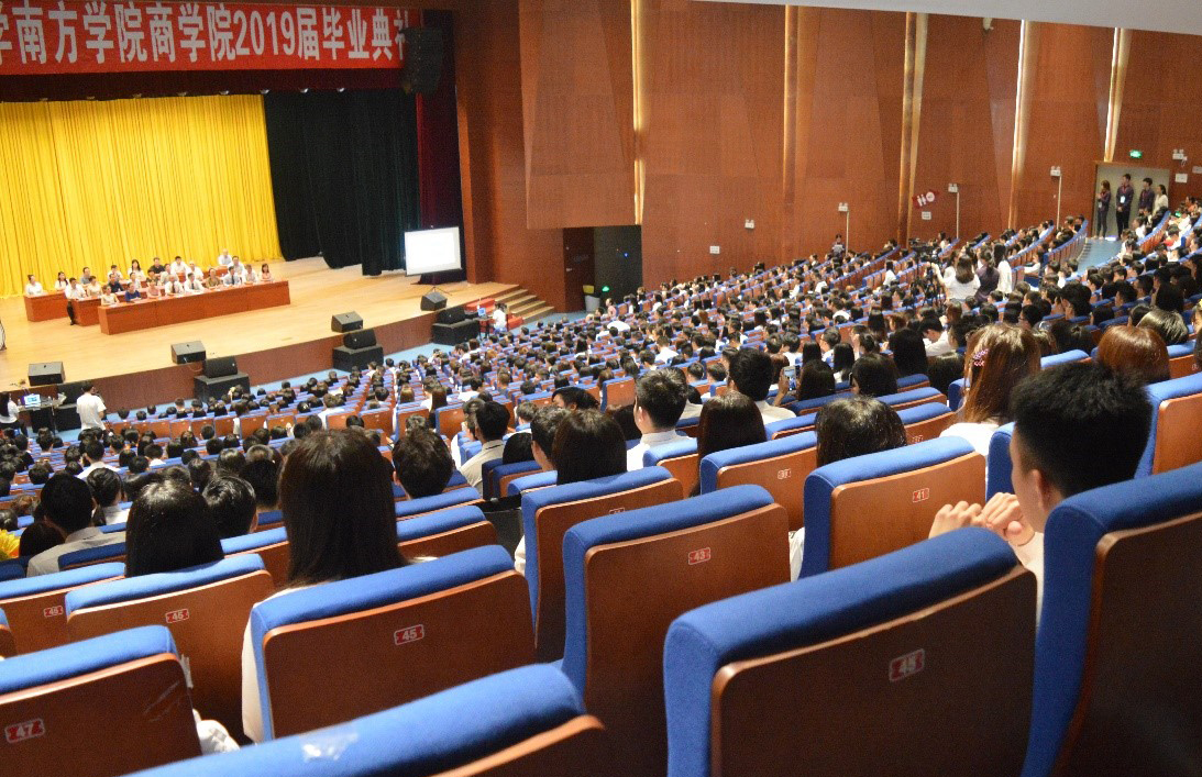 2019年6月18日上午八时三十分,中山大学南方学院williamhill中文2019届毕业生毕业典礼于新综合楼大礼堂顺利举行。出席本次毕业典礼的各位领导与嘉宾分别是:中山大学南方学院副校长黄静波教授,校长助理王琳琳女士,中大南方学生工作部部长、团委书记程爱民老师,校团委副书记、校友会秘书长陈思思老师,2019届毕业生家长代表湛江市二中海东小学德育处主任郑选真女士,williamhill中文2014届毕业生、校友代表吴榕华校友,williamhill中文院长何兴强教授,常务副院长史卫副教授,副院长兼经济系主任张玉冰副教授,williamhill中文张琳教授,金融系系主任林鸿文副教授,工商管理系系主任高凯副教授,旅游管理专业主任黄力远副教授,国际商务专业主任马学文副教授,刘婵副教授,魏许青副教授,魏久峰副教授,吴宏哲副教授,王维靖副教授,田丽副教授,甘宏副教授,梅旭照副教授,工商管理专业主任黄华灵老师,经济学专业主任王家兴老师,金融学专业主任李聪老师,电子商务专业萧裕中老师,经济学专业林学宏老师,以及williamhill中文其他教师代表。