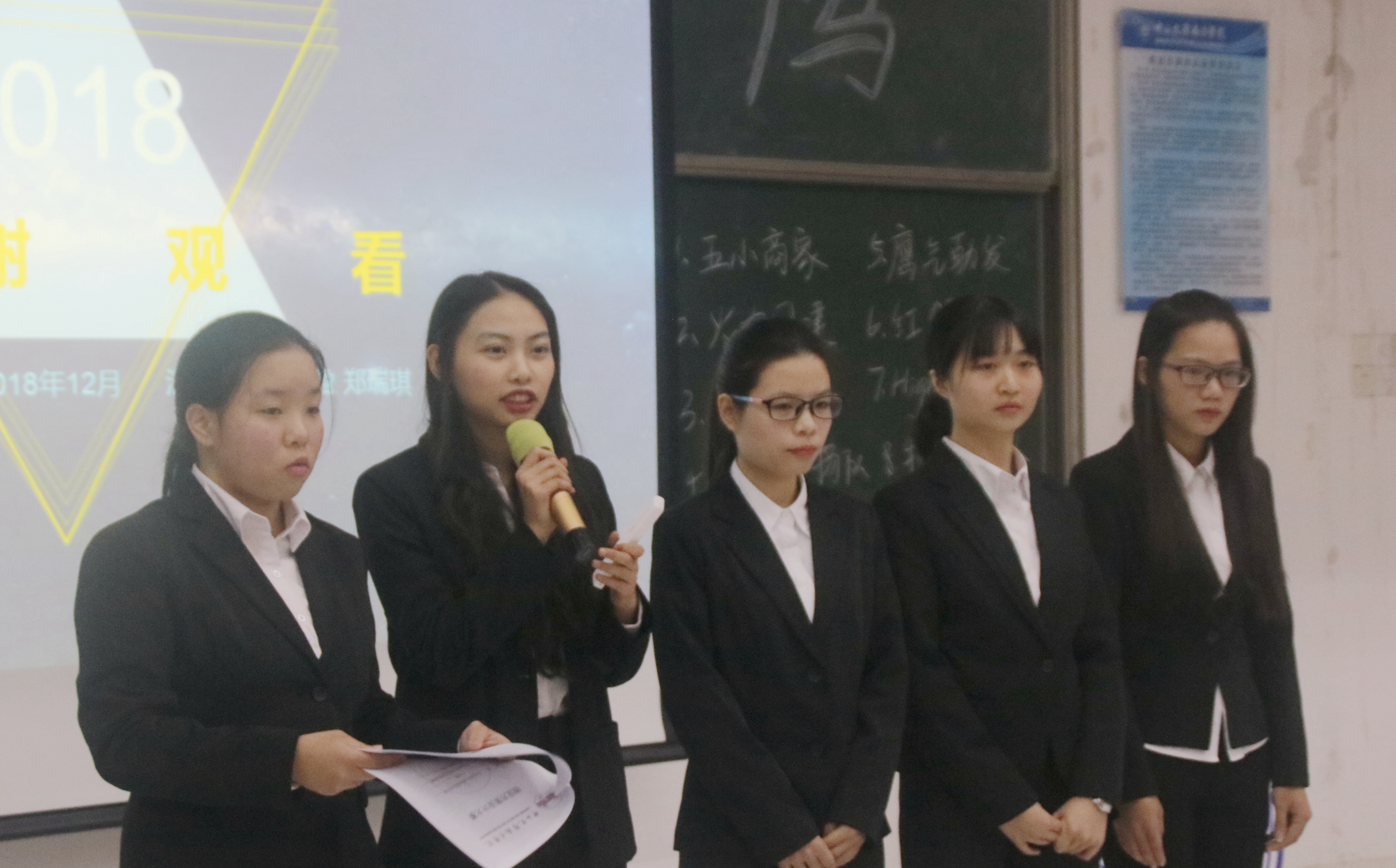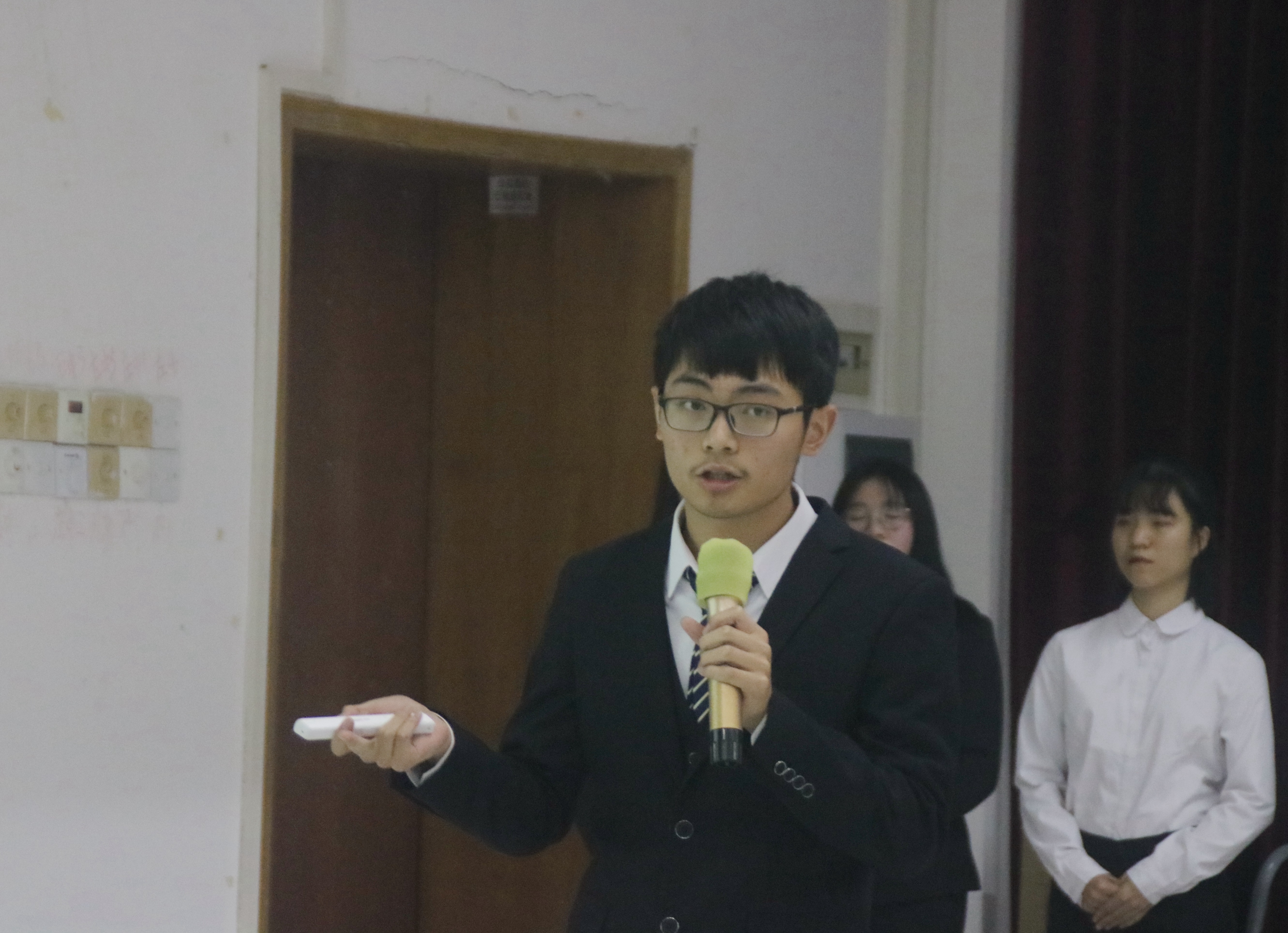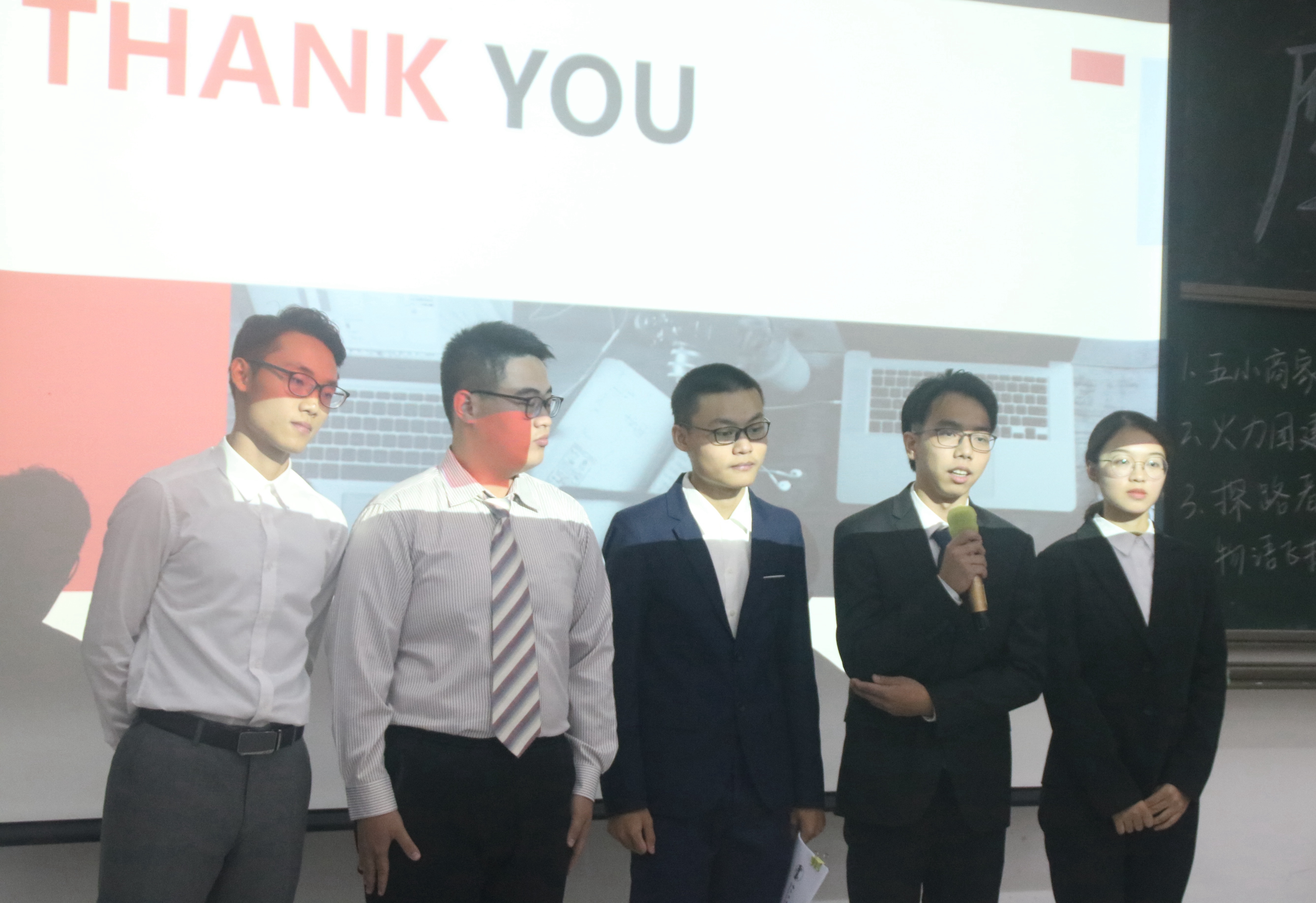 在纪检部为比赛公证及主持人介绍比赛规则后,比赛正式拉开了序幕。比赛开始,第一支队伍“五小商家”为我们带来项目介绍。他们以马钢公司为背景,分析该企业存在的主要问题,并针对问题逐一提出解决方案。该组还从国家政策,市场环境方面入手进行可行性分析,再风险评价中抓住三个主体进行剖析,展现了该方案的实行前景。
