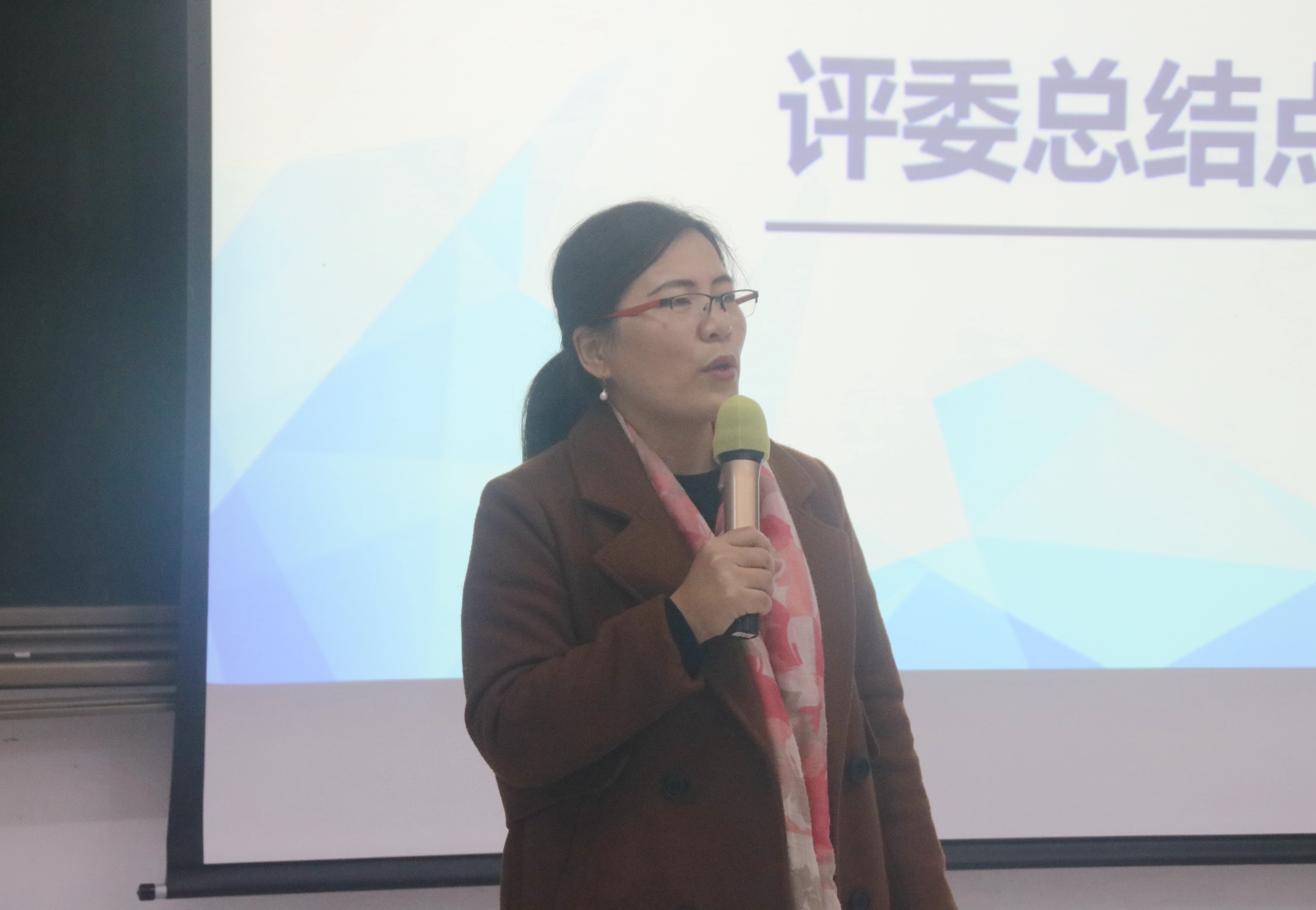 至此,所有参赛队伍全部结束演讲,比赛暂告一段。随后,王秀梅老师队选手表现进行总评,从本场比赛参赛队伍人数之多表示惊喜到同学们对方案的多样化思考。最后,王秀梅老师感谢参赛的同学们并真诚地祝愿同学们今晚有所收获。