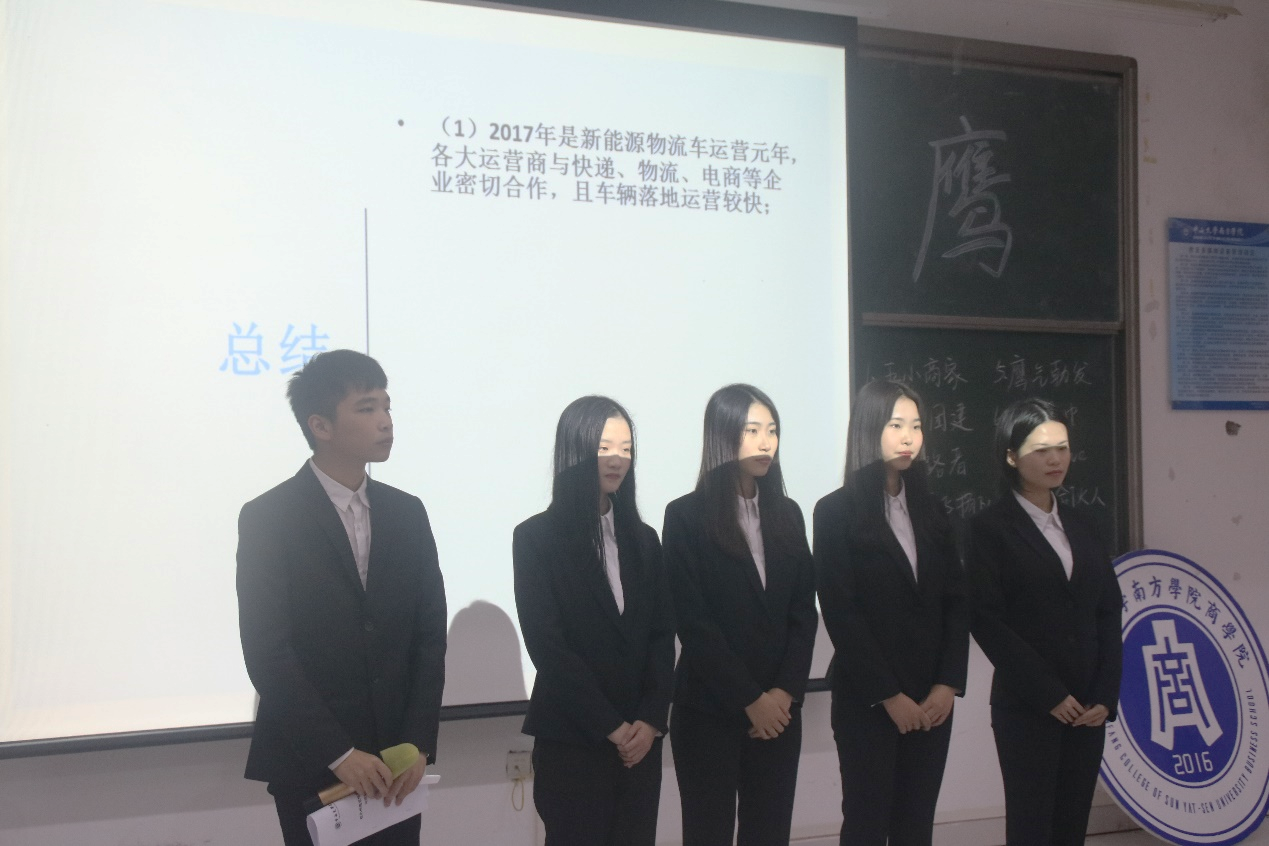“探路者队”带来的是对电动物流车市场现状的分析及猜想,进而提出解决马钢集团绿色环保问题的方案。随着经济发展,环保问题引起越来越多人地关注,他们从电动物流车方面入手,提出两种有利于发展的猜想。在市场调研中,引入近年来货车消费的数据分析得出电动类型逐年上升,同时结合中国经济结构的调整与供给侧改革,先试点后推广的做法对该产品进行详细阐述,令老师同学们眼前一亮。
