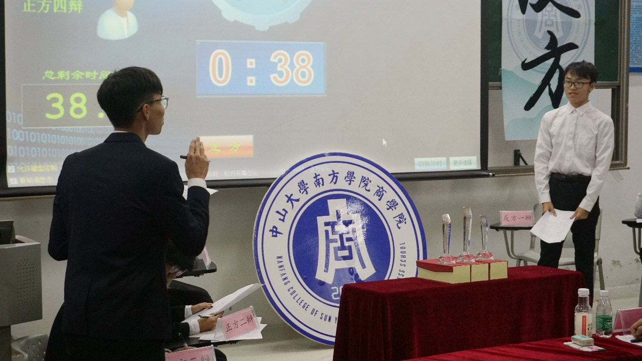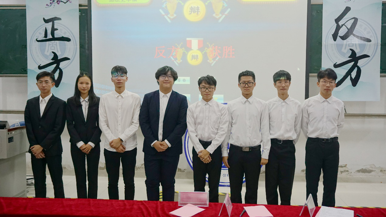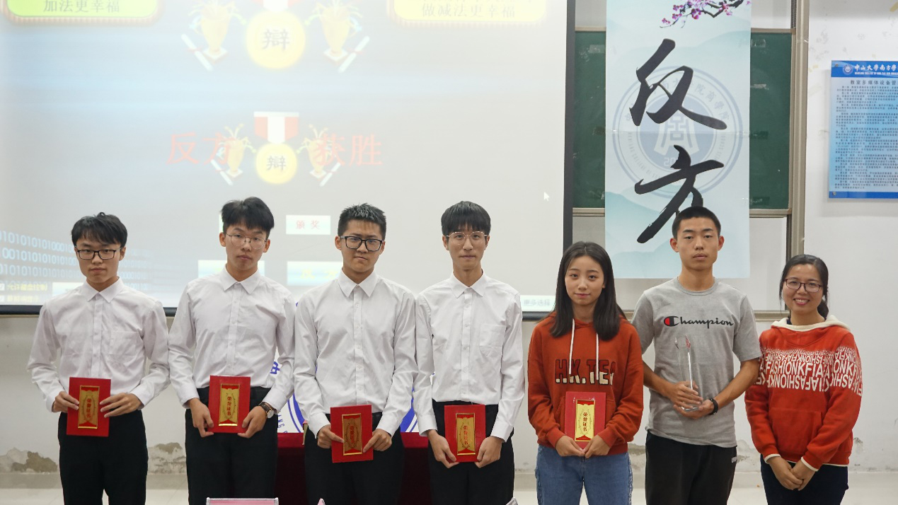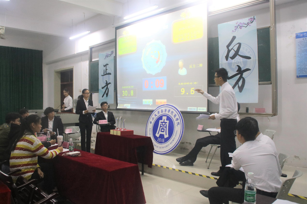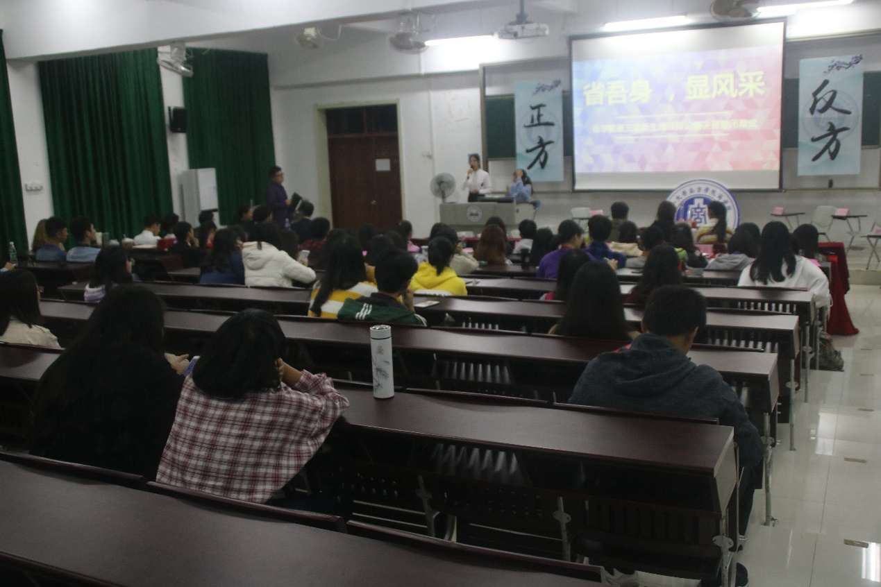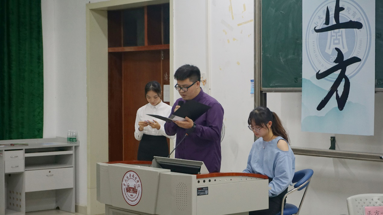 本次比赛由正方市场营销1班与反方金融工程2班就“21世纪青年应当做加法/减法更幸福”辩题展开唇枪舌战。