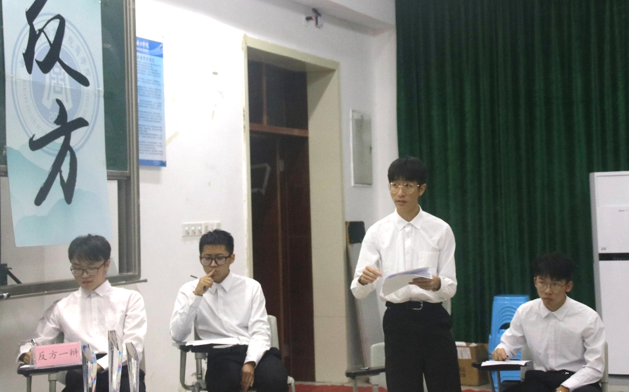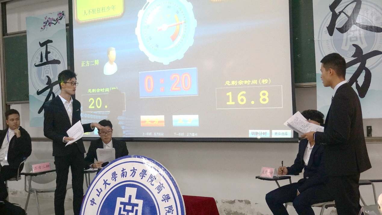 接而的二辩反驳立论、对辩。双方二辩以“少年”为核心展开唇枪舌斗,双方交锋你来我往,攻击与反驳势均力敌,比赛到达小高峰。随之的三辩攻论环节,双方三辩抓住前两轮对方的漏洞进行盘问,舌战群儒,没有丝毫怯场,从容自若。盘问结束后进行总结,加强己方观点。