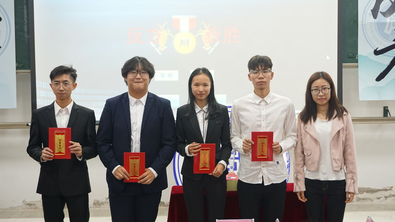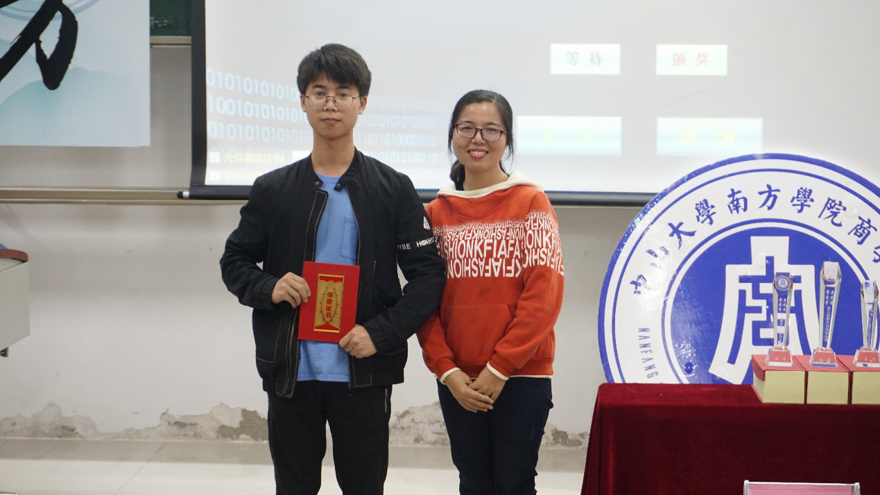 最后的结辩环节,反方四辩继续提出“马云”例子,提出青年应有特长的观点,推进己方辩点。而正方四辩则强调“年轻人应该做自己想做的事情,不应抑制”,维护己方辩点。双方四辩都以精彩的结辩为己方辩论画下圆满的句号。最终,反方金融工程2班以6:3的成绩赢得了本次比赛胜利,正方三辩何泽欣同学获得了“最佳辩手”称号。
