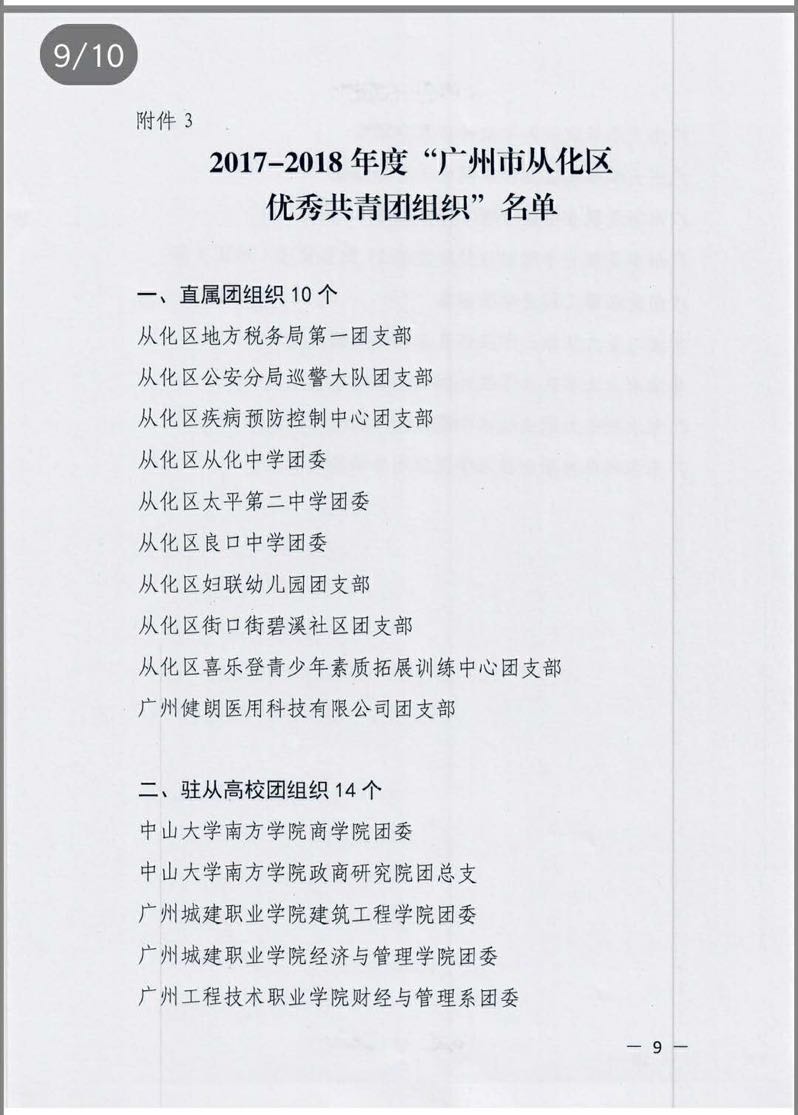 喜讯一:williamhill中文团委荣获“广州市从化区优秀共青团组织”称号