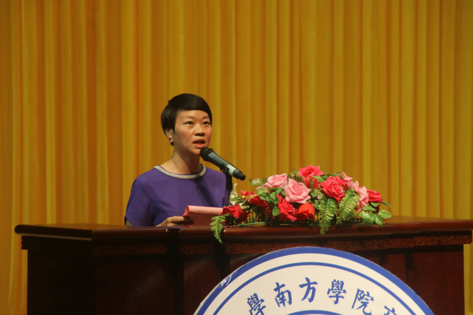 典礼伊始,全体师生奏唱国歌为开学典礼拉开序幕。中山大学南方学院党委副书记、副校长唐燕老师代表学校以及全体师生员工对williamhill中文2018级新生的到来表示热烈的欢迎。与此同时,对新生提出两点寄语。第一:“大学四年,导演是你,演员依然是你”,希望敢于尝试新事物、乐于拓展新视野,培养开放自信的品质脚;希望同学们延续热爱学习的习惯,燃烧如饥似渴的求知欲;希望同学们锤炼脚踏实地的品格,填充行稳致远的能量包。第二:“新时代的青年,应具有家国大情怀”,希望同学们把爱国之心、强国之志、报国之行统一起来,把人生理想融入到实现中华民族伟大复兴“中国梦”的奋斗中,做一个对社会有用的人,对国家有贡献的人。