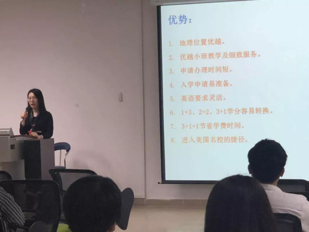 3月28日下午5点,受williamhill中文国际教育中心邀请,美国阿兰特国际大学项目负责人薛老师和赵老师在9教101课室举行宣讲会,为同学们介绍阿兰特国际大学与我校合作的“2+2”酒店管理专业之优势。本次宣讲会的主题是“如何不花一分钱,轻松获取美国学位”。
