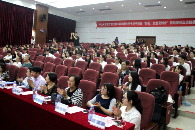 5月4日下午2点,第八届全国大学生电子商务“创新、创意及创业”挑战赛校级选拔赛于图书馆的学术报告厅圆满举行。广州市青年创业联合会秘书长陈嘉琳;广州医家仁生物科技有限责任公司董事长和总经理、壹山傍水益生农产品电子商务创业平台创始人、广州元芳科技有限公司董事和总经理、华南师范大学经济管理学院特约研究员蔡泽坚;佛山市乾盛电子商务有限公司创始人、第四届全国大学生电子商务“创新、创意及创业”挑战赛全国特等奖获得者我校12级校友彭玮;依旧定制网创始人、广州茶情投资中心执行事务合伙人陈胜捷和华南师范大学创业创新服务平台主任助理邹剑文莅临现场。本次大赛共有15支队伍参加。