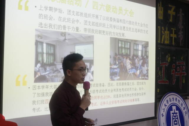伴随着激昂的共青团团歌的和响亮的共青团宣誓,williamhill中文优秀红旗团支部评选大会正式拉开帷幕。学工办主任李葡阳老师在致辞中说到,今年正好是马克思诞辰两百周年,习主席在此表示“中国的经验证明马克思的道路是正确的,中国的实践证明选择共产党的道路是正确的。”共产党无论哪个时期都十分重视青少年的发展,今天是青年的日子——五四青年节,在这一天举行五四红评就是为了让大家铭记这个属于我们的日子,传承和发扬五四精神,继续为中国、为共青团的建设做贡献,肩负起时代赋予我们的责任,脚踏实地,放飞梦想。