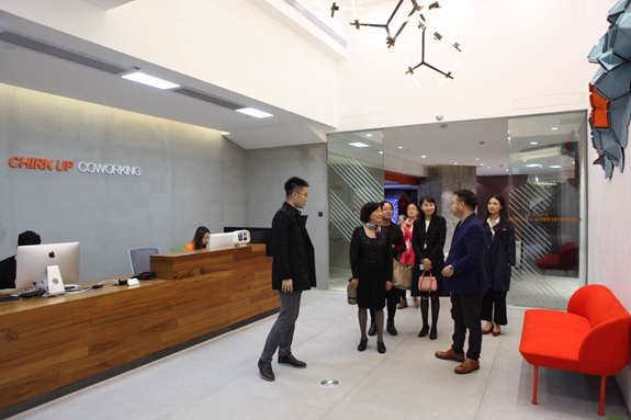考察团一行先后参观了七客园区内创业办公室、路演场所、休息室、商务中心等相关配套设施以及腾讯众创空间。基地负责人向大家详细介绍了孵化基地的创建过程、运转现状及创业团队入驻情况,并着重解读了园内的各项创业扶持优惠政策。良好的软硬件条件和无微不至的服务很快吸引了老师们的兴趣,大家纷纷就自己感兴趣的问题与基地负责人进行了面对面的交流。“这里的创业环境非常赞,每一个细节包括建筑角落植物的搭配,休息空间的装饰,灯光的搭配,艺术品的摆放都非常有创意,能激发年轻人的工作热情,我们可以好好借鉴一下。”张琳副院长感慨到。
