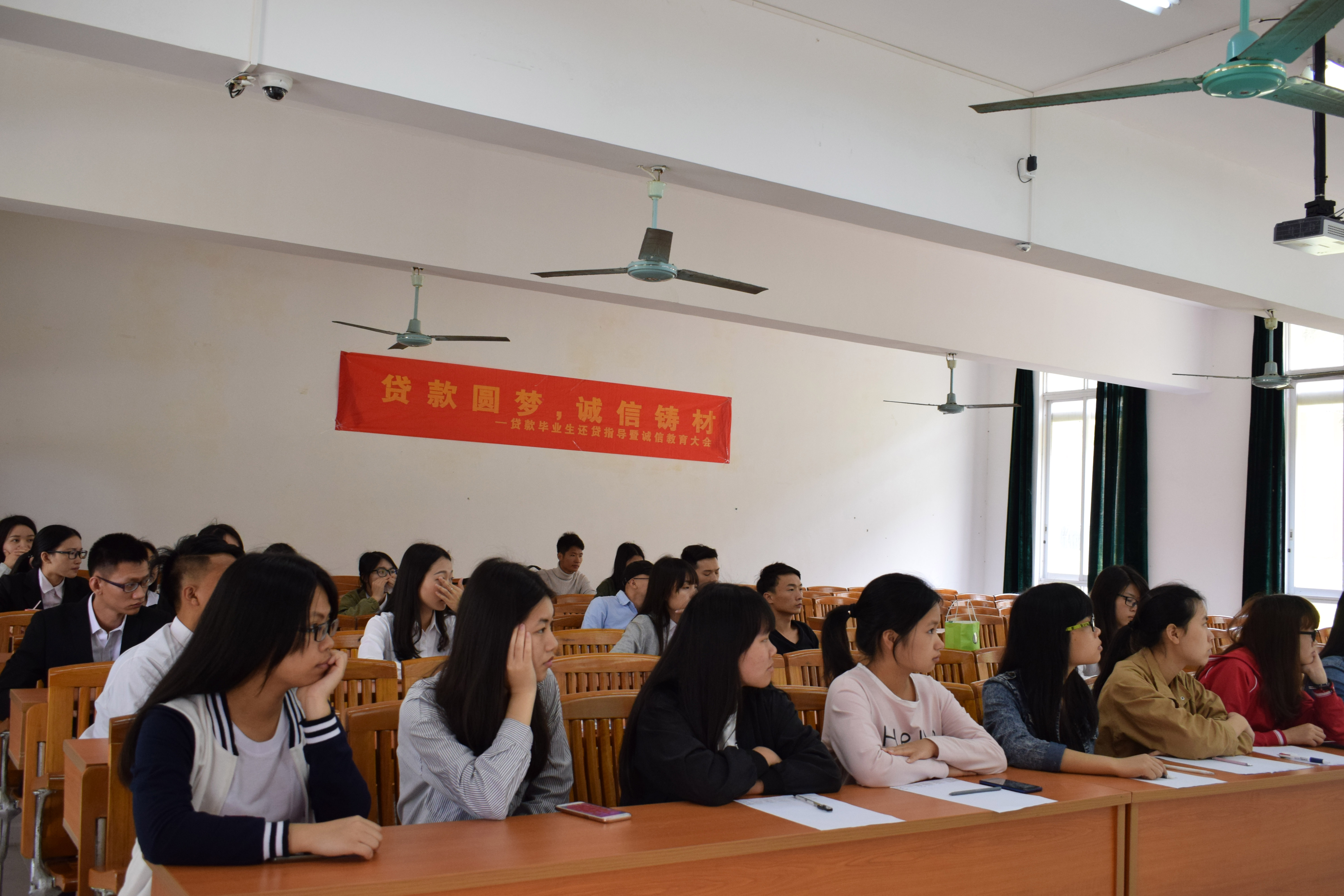 “诚实守信是做人之本,希望同学们毕业后信守诺言,认真履行还款责任,诚信做人”,随后,谭筱琦老师着重强调逾期还款对个人的征信系统、就业等方面的严重性后果,并重申助学贷款违约、逾期的借款的信用信息还会载入毕业生学历查询系统,情节严重的贷款人还将承担法律责任。