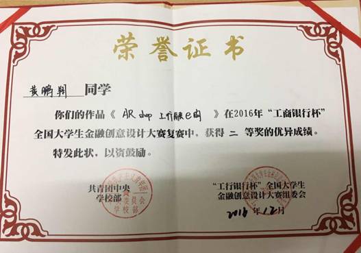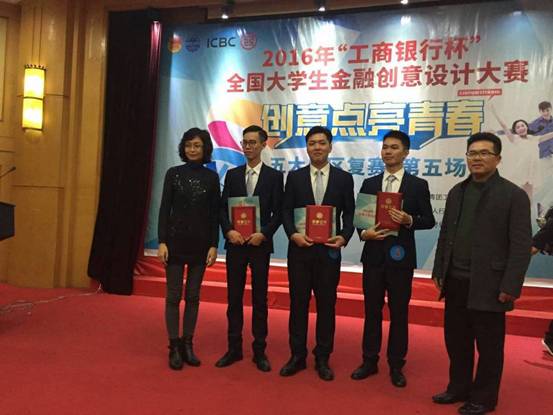 近日,我院吴肜泰老师指导的“三响炮组合” 荣获第七届"工商银行杯"全国大学生金融创意设计大赛二等奖,该组合由我院学生黄鹏翔与华南师范大学学生周大宇,广东财经大学学生刘如毅组成,获奖的学生同时还获得得中国工商银行全国47家省级分行机构任意挑选免试直通录用的机会。