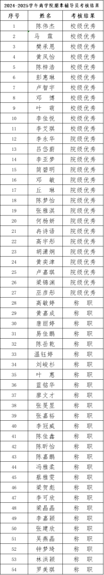 根据《学生处关于做好2024-2025学年朋辈辅导员评议推优工作的通知》,结合工作实际,现决定开展2024-2025学年朋辈辅导员评议推优工作,经过学院综合考核,评议结果如下,现向全院公示。