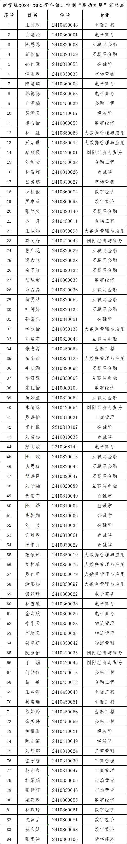 根据《关于开展2024-2025学年“朝阳之约”计划的通知》(学工〔2024〕17号)的工作安排,经综合审查学生在朝阳之约活动中的整体表现,并组织评议后一致同意,拟推荐以下同学参与评选2024-2025学年第二学期“运动之星”称号,现面向全院公示,公示时间为2025年6月16日-2025年6月19日。