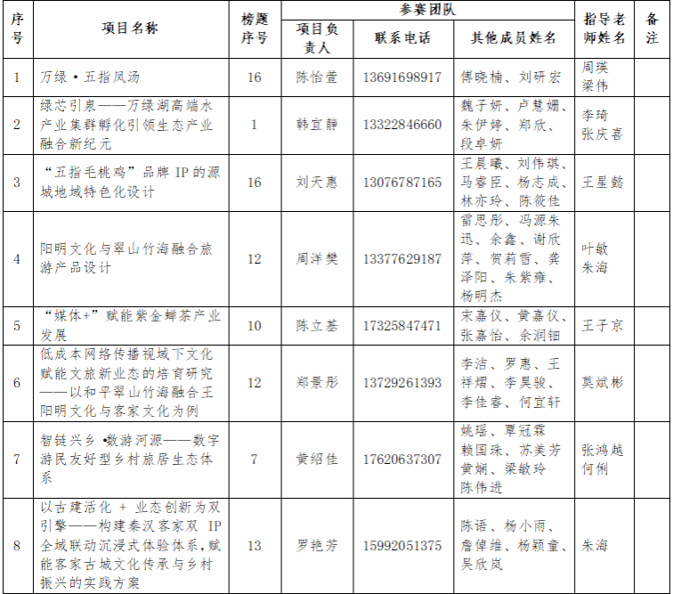 根据《校团委、科研处、教务处关于举办第十五届“挑战杯”广东大学生创业计划竞赛河源“百千万工程”专项赛校内选拔赛通知》的相关要求,williamhill中文积极组织学生参与,经过报名参赛、学院评审等环节,最终选拔出以下8份作品推荐参加校赛。现将推荐参加校赛作品名单及相关信息进行公示。