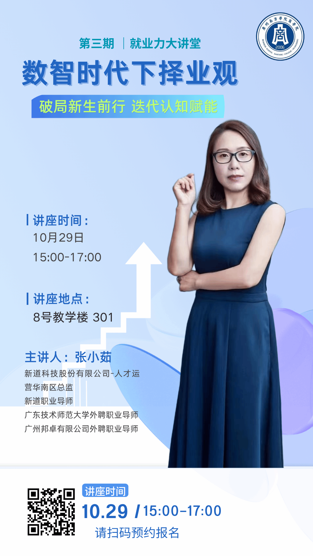 欢迎我院师生积极参加本期活动,与张小茹老师共同探讨数智时代下的择业新视角、新方法与新趋势!现场参与宣讲会,额外可加学生成长学时哦!