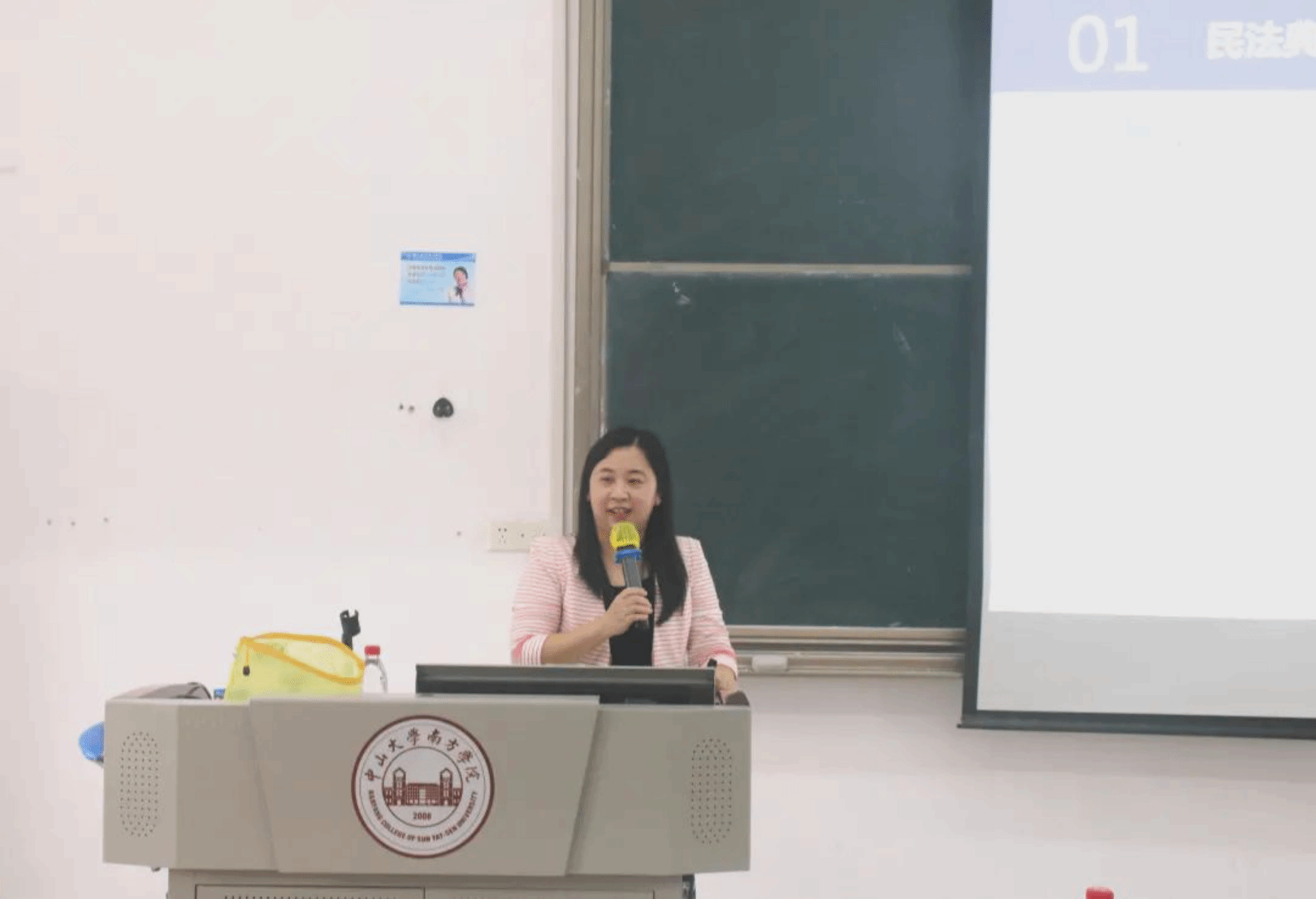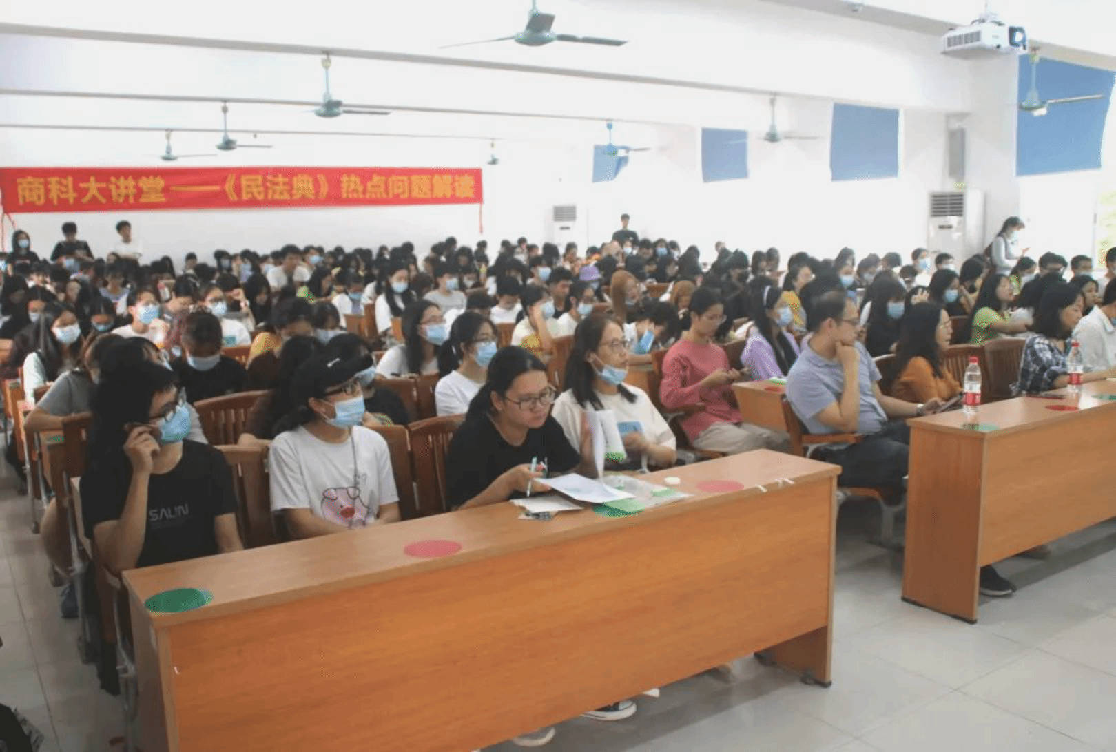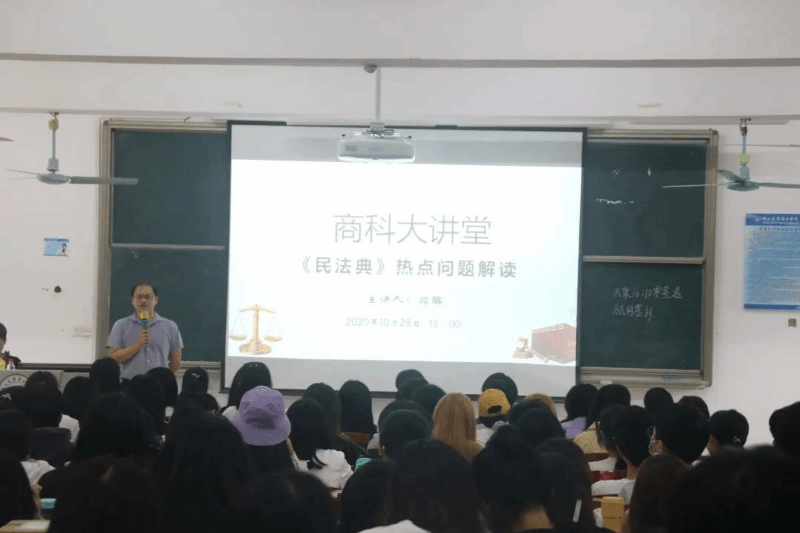 接下来,招璐律师从“首‘典’诞生”、“数‘典’论金”和“‘典’入生活”三个方面引入,为同学们正式开启精彩讲座。招璐律师为同学们简要介绍了《民法典》的立法背景和主要内容,并通过精彩的案例分析,将《民法典》出台后对经济社会各方面产生的影响深入浅出的展现在同学们面前,使同学们更加深入地了解到何为《民法典》及其重要的地位与价值。招璐律师还结合理论知识和数据模型,精辟阐释了《民法典》与现行民事法律的关系。同时,招璐律师以“腾讯与老干妈之争”为切入口,深入分析了《民法典》的出台对银行业务以及个人信息的广泛影响,清晰展示出《民法典》推动经济高质量发展的重要作用和意义。最后,招璐律师通过一系列鲜明真实的例子对《民法典》与日常生活的关系进行了进一步的说明,并提醒同学们要学会通过法律武器来维护自身的合法权益。