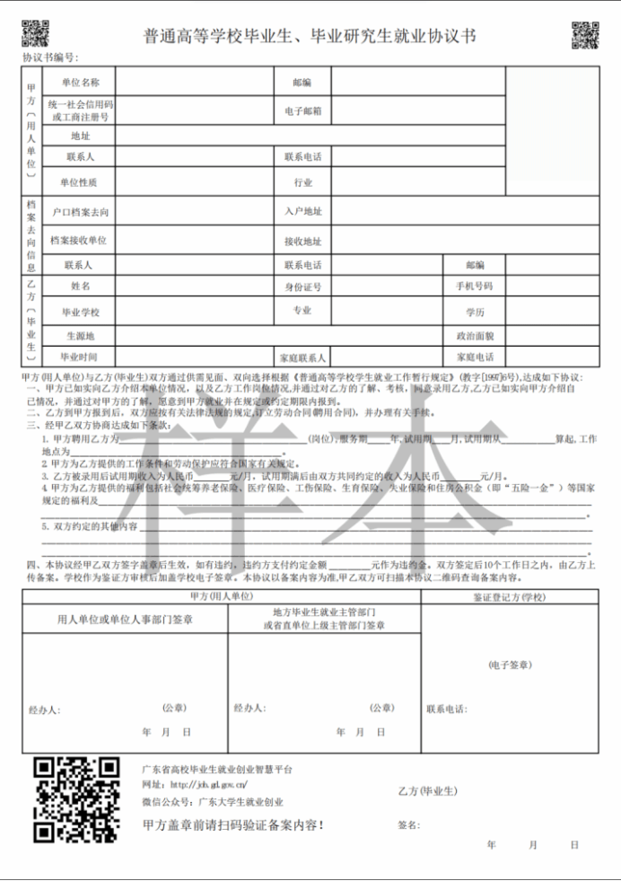 毕业生或签约单位可下载协议书PDF版文件,一般打印2份,与签约单位同时签订该协议。