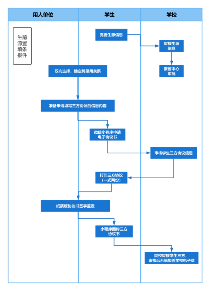 1. 毕业生在申请协议书时务必慎重考虑,是否已确定意向单位,双方约定事宜是否清晰。每人有且仅有一份三方协议,签约后必须取得原单位同意后方可解除,申请与新单位签订。